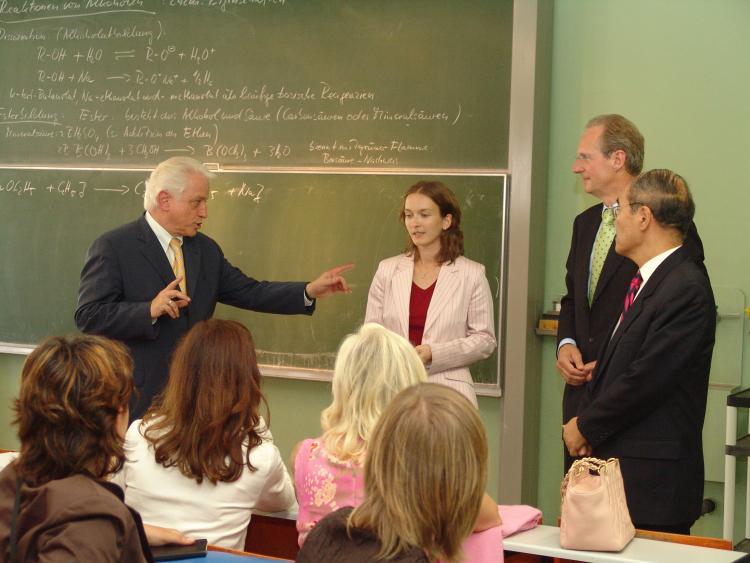 Stuttgart. Die Welt zu Gast bei Freunden. Unter diesem Motto findet als Begleitprogramm zur Fußball-WM das UNESCO-Weltjugend-Festival 2006 in Stuttgart statt. Dieses soll, wie alle UNESCO-Projekte, in den Bereichen Kultur, Wissenschaft und Erziehung die Völkerverständigung auf vielfältige Weise fördern. Im Rahmen der Thementage des Festivals besuchten UNESCO-Generaldirektor Dr. Koichiro Matsuura und Oberbürgermeister Dr. Wolfgang Schuster am Donnerstag, den 6. Juli die einzige UNESCO Modellschule in Stuttgart: das Institut Dr. Flad, Berufskolleg für Chemie, Pharmazie und Umwelt.