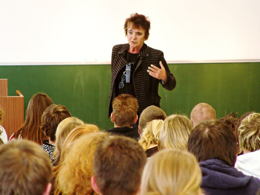 "Jude ist Jude" Bereits zwei Tage nach der begeistert gefeierten Premiere des Theaterstückes "Ruf der Verantwortung" stand ein weiterer Höhepunkt auf dem Programm des Instituts. Mirjam Pressler, eine der bekanntesten und profiliertesten Kinder- und Jugendbuchautorinnen, las aus einem ihrer zahlreichen Werke. Sie verfasste mehr als 30 Bücher für Kinder, Jugendliche und Erwachsene. Zudem übersetzte sie etwa 400! Werke aus dem Niederländischen, Flämischen, Hebräischen, Africaans und dem Englischen. Die Liste ihrer Auszeichnungen ist lang; u.a. erhielt sie den Deutschen Jugendliteraturpreis, den Deutschen Bücherpreis sowie den Bayrischen Verdienstorden. Bevor Mirjam Pressler Schriftstellerin wurde, hat sie Kunst studiert, brotlose Kunst. Als Alleinerziehende mit drei Töchtern war sie darauf angewiesen, den Lebensunterhalt zu verdienen, sei es als Taxifahrerin oder Jeansladeninhaberin. Dass sie sich für die Schriftstellerei entschied, hatte letztendlich auch materielle Gründe, hoffte sie doch, mit ihrer Leidenschaft genügend Geld zu verdienen. Bereits in früher Kindheit hat sie Bücher regelrecht "verschlungen" und sagt selbst über sich: "Ich kann nicht ohne Sprache sein." Wenn sie nicht eigene Werke verfasst, arbeitet sie als Übersetzerin. Wenn sie nicht übersetzt, entstehen eigene Bücher. Das soziale Umfeld prägt die Heranwachsenden, im Positiven wie im Negativen; davon ist Mirjam Pressler auch aufgrund eigener Erfahrungen zutiefst überzeugt. Sie selbst ist jüdischer Herkunft, wurde unehelich geboren, von Pflegeeltern erzogen, hat Erfahrungen in einem Kinderheim gemacht. Sie weiß genau, wovon sie schreibt und spricht, ihre Bücher "wirken" nicht nur unsentimental und ehrlich, sie sind es! Die Protagonisten ihrer Kinder- und Jugendbücher sind oft Außenseiter, stammen aus kaputten Familien, werden zu Opfern, sind Ausgelieferte. Leicht könnte man bei der Lektüre in Resignation verfallen nach dem Motto: "Die Umstände sind nun mal so". Weit gefehlt - gerade diese Figuren entwickeln Überlebensstrategien, die Mut machen. Das "Vorbild" für die Malka aus dem Roman, die "echte" Malka Mai, wohnt heute in Israel und sie hat für die Dokumentensammlung der Gedächtnisstätte Yad Vashem ihre Familiengeschichte aufgeschrieben, dabei aber das Wesentliche, ihre Erlebnisse auf der Flucht, nur mit wenigen Worten angedeutet. Auf ihre Bitte hin "erfand" Mirjam Pressler ihre Erlebnisse neu. "Wie hat den die 'reale' Malka auf den Roman reagiert?", wollten die Schüler, in der sich der Lesung anschließenden Fragerunde wissen. Obwohl das Buch inzwischen sowohl in einer englischen als auch hebräischen Übersetzung vorliegt, hat sie den Roman bis heute nicht gelesen. Verdrängung? Angesichts des Grauens, dass dieses siebenjährige Kind mutterseelenallein erlebt hat, ist das nachvollziehbar. "Ich gebe mich nicht der Illusion hin, Bücher könnten die Welt verändern, aber für einzelne Menschen kann ein bestimmtes Buch eine wichtige, weltbewegende Bedeutung erlangen", so die Autorin. Malka Mai hat das Zeug dazu, ein solches Buch zu sein. Mirjam Pressler: "Malka Mai", Verlag Beltz & Gelberg Angela Schmitt-Bucher |