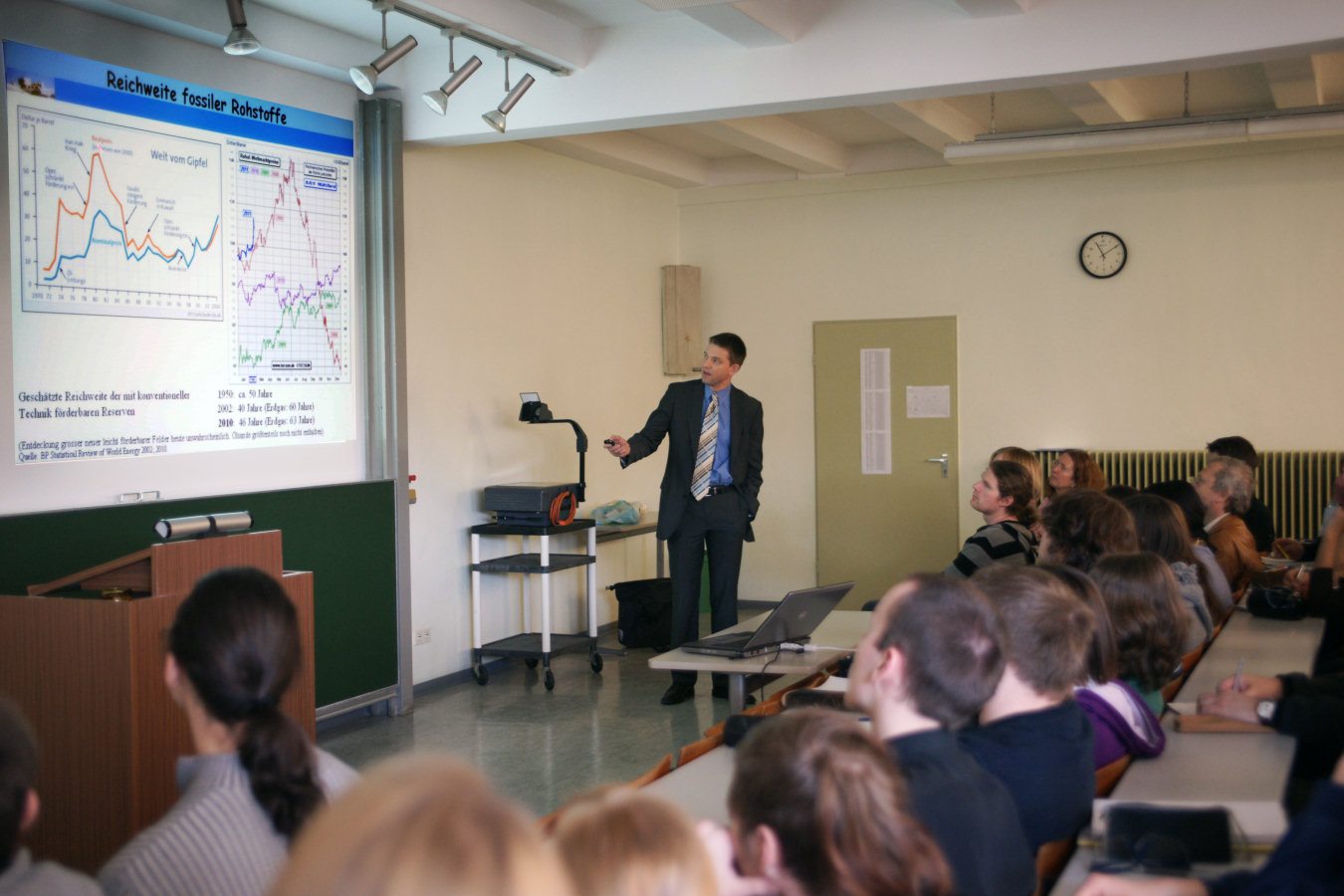 Mecking wies zu Beginn seines Vortrags auf den bekannten Grund für das zunehmende Interesse an der Nutzung nachwachsender Rohstoffe hin. Die Nutzung fossiler Brennstoffe ist wegen der begrenzten Reserven keine Option für die Zukunft. Ein weiteres Problem, das der weiteren Nutzung fossiler Energien entgegensteht, ist die gewünschte Reduktion des Ausstoßes von Kohlendioxid. Auch die Volatilität und das langfristige Steigen des Ölpreises, die sich auch gegenwärtig angesichts der Krise in Nordafrika zeigt, zwingen zum Umdenken.