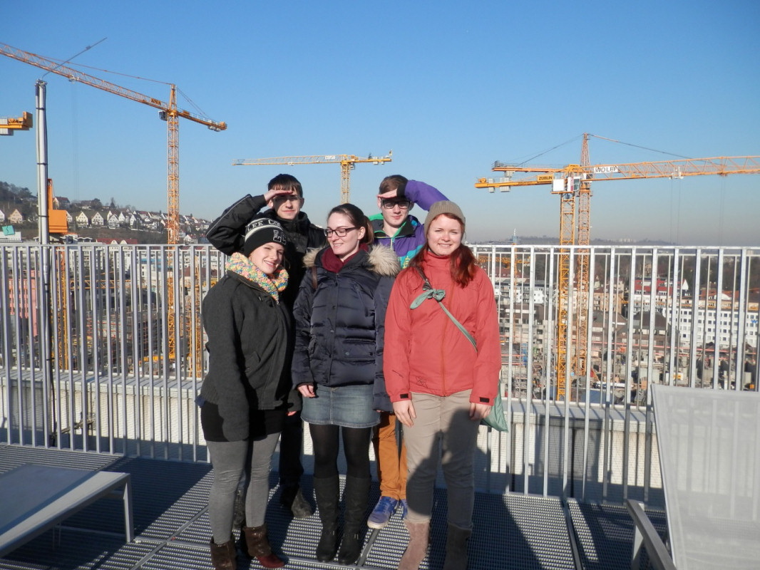 Freitag, 13. Dezember 2013 Um 8.15 Uhr begann der dritte Tag des Schüleraustausches für die Austauschschüler mit einem Rundgang durch unsere Schule und einem Film über Stuttgart. Bei dem darauf folgenden Frühstück mit Butterbrezeln begrüßte unser Schulleiter Wolfgang Flad die tschechischen Gäste herzlich und erzählte ihnen einiges über unsere Schule und die Schulpartnerschaft. Anschließend besuchten wir die Stuttgarter Stadtbibliothek und genossen die Sonnenstrahlen und den schönen Ausblick über Stuttgart von der Dachterrasse aus. Nach einer kurzen Stärkung machten wir uns auf den Weg zum Mercedes-Benz-Museum. Am Abend zeigte uns Frau Wendling noch die Markthalle in Stuttgart mit ihren vielen internationalen Spezialitäten. Einige von uns bummelten noch ein wenig über den Stuttgarter Weihnachtsmarkt und andere fuhren erschöpft von dem Tag nach Hause.