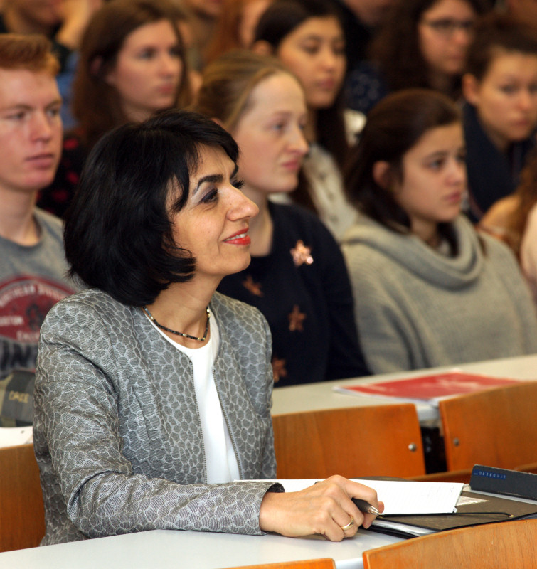 Als ein Schüler sie als Türkin ansprach, bekannte sie klipp und klar, sie sei Deutsche, fühle sich durch und durch als Stuttgarterin und betrachte das Grundgesetz als eine „tolle Verfassung“, die eine weltoffene und tolerante Gesellschaft garantiere, die unbedingt verteidigt werden muss.