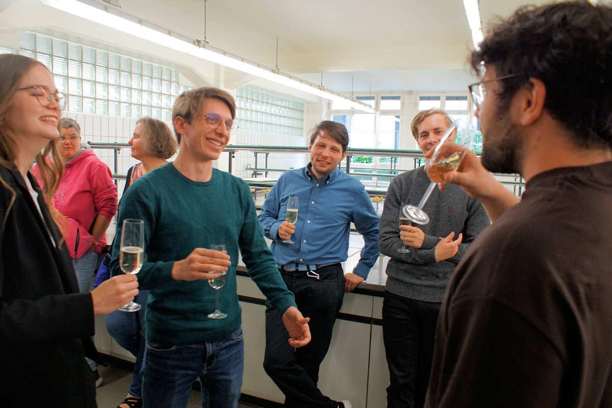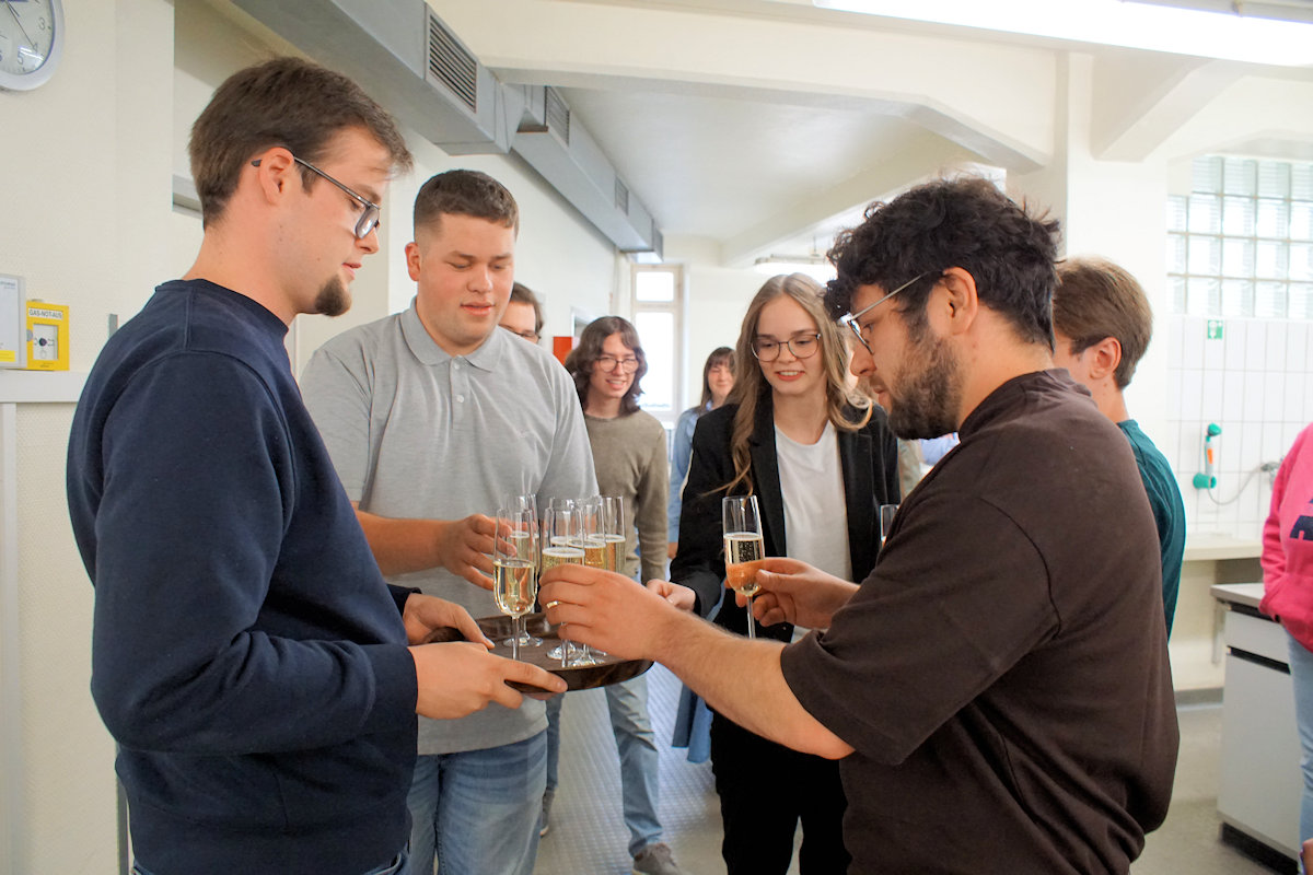 Anschließend folgte die Zeugnisausgabe und nach einem gemeinsamen Foto des Abschluss-Lehrgangs gab es noch ein gemütliches Zusammensein mit ein paar Getränken und selbst mitgebrachten Leckereien im Erdgeschoss-Labor.