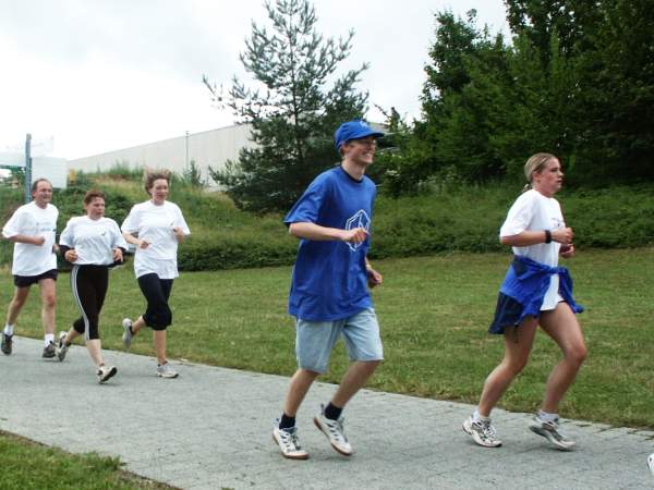 Sportliche Wissenschaftler beim Step Run 2003