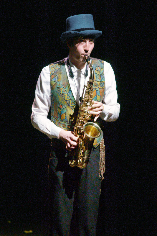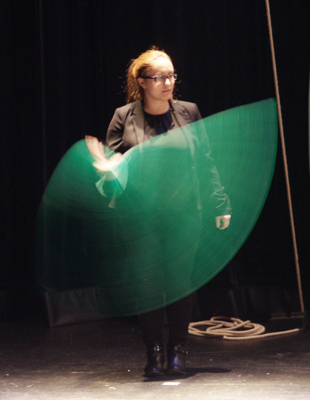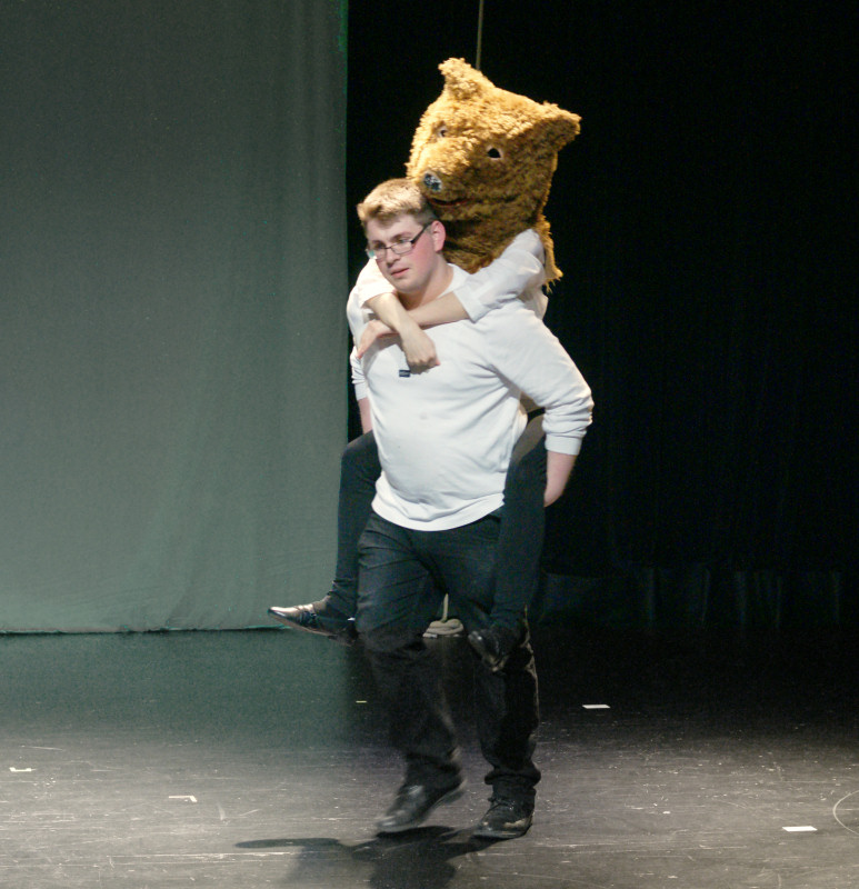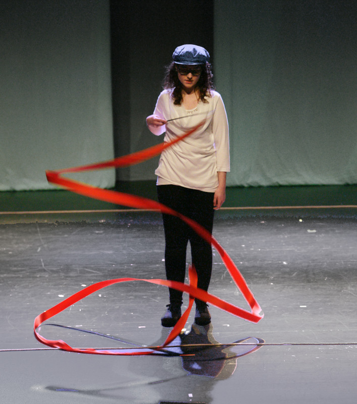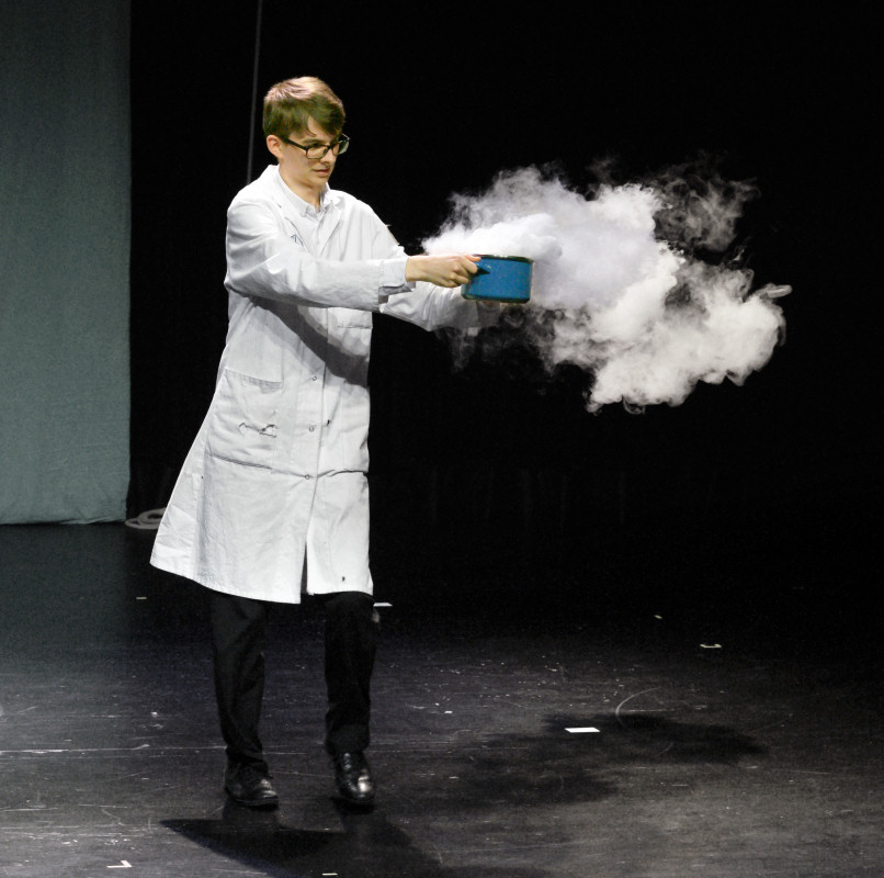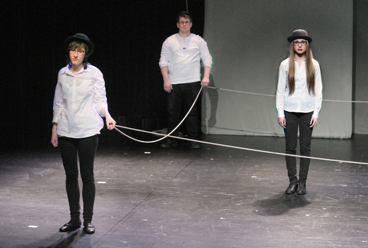 Im Prolog des Stückes halten alle Protagonisten Einzug auf die Bühne und verdeutlichen in kleinen Szenen, dass menschliches Verhalten stets mit Sozialisation zusammenhängt. Dabei schlüpfen Sie in hoher Frequenz in verschiedene Rollen, so dass ein Kaleidoskop an Verhaltensweisen entsteht. Der zweite Faktor ist Motivation. Sebastian Braun stellt seinem Publikum die provokante Frage: "Würden Sie weniger atmen, wenn Luft einen Preis hätte?" Dabei bläst er Luftballons auf und lässt sie ins Publikum fliegen. Die SchülerInnen haben sich zu Ihren Thesen unterhaltsame Szenen ausgedacht, die sie mit großer Spielfreude interpretieren und die Zuschauer faszinieren. Anna-Lena Kohl spielt eine Hausfrau, die auf einer Bank sitzt und über das Nichtstun sinniert. Die Botschaft kommt klar rüber: Man verhält sich immer, auch wenn man nichts tut. Im schlimmsten Fall kann das zu unterlassener Hilfeleistung führen. Marie-Luise Oehmisch bringt die Flüchtlingsthematik, den Klimawandel und den Atommüll ins Spiel: Was passiert eigentlich, wenn wir nichts dagegen tun?