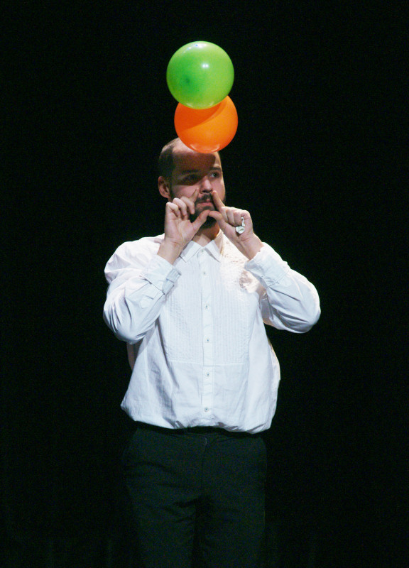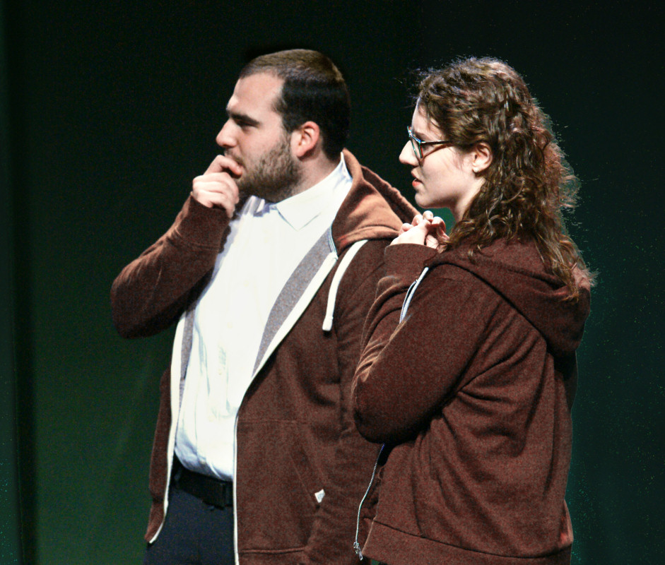 Doch sind es nicht nur die großen Fragen dieser Welt, die uns mit Blick auf zwischenmenschliches Verhalten kümmern sollten. Verhaltensfragen stellen sich uns überall in den Weg. Ein Kellner (Sinan Celik) wird von einem rülpsenden Gast auf die Probe gestellt. Ein Rollerfahrer (Kevin Pircher) stürzt sich mit seinem rücksichtslosen Verhalten am Ende selbst in den Tod. Ann-Katrin Riedel führt die Zuschauer souverän durch die Szenen, das Publikum quittiert die Einfälle mit einem alles andere als verhaltenen Applaus.